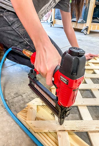 Once all four panels are constructed, they should come together like a puzzle. Secure at each corner with wood glue and 1 ¼” brad nails.
