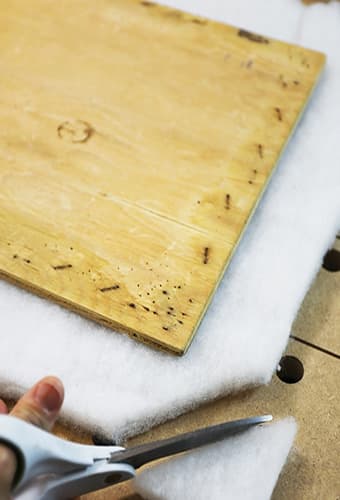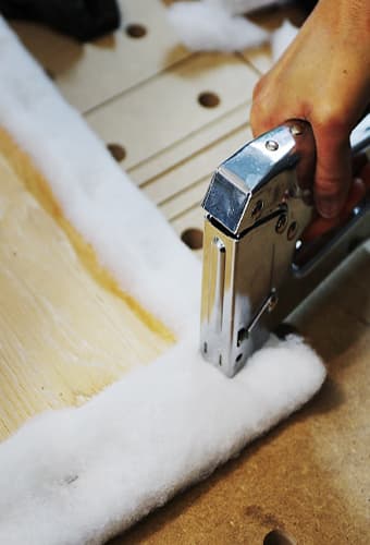 Next, use scissors to cut the rug pad down to size and staple it to each tread using your Arrow PT50 pneumatic staple gun and Arrow ½″ staples.