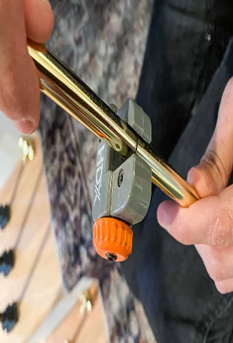 For a finishing touch of elegance, add some optional brass stair rods and brackets. You can use a pipe cutter to cut the brass tubing to length, then use a cordless drill to screw the brackets to the stairs.