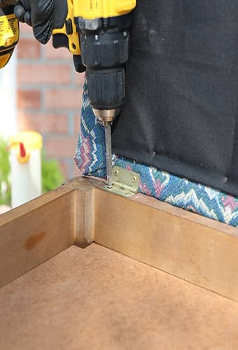 After that, take your stool apart. We removed the upholstered seat from the base and then took off the original fabric by using the Arrow staple lifter. As a tip, we suggest always putting your hardware and screws in a baggie to avoid losing them.