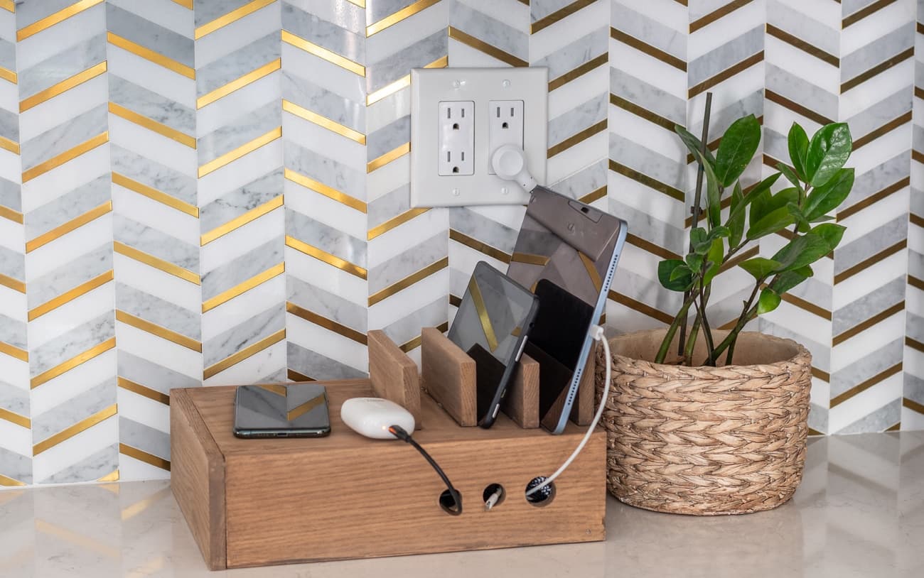 Now you're all set to power up your DIY charging station! In addition to your paint or stain, you can add fun details like a lightning bolt decal to identify where the wireless charger is located.