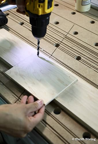 If you’re not covering your organizers, drill each of the back pieces of the organizers first. It’s much easier to do this step when you can lay the pieces flat.