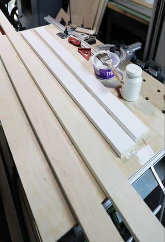 To cut the pieces, you can use a jigsaw since it’s perfect for quick, easy cuts. We recommend using a speed square as a makeshift fence to keep the saw straight while making your cuts.