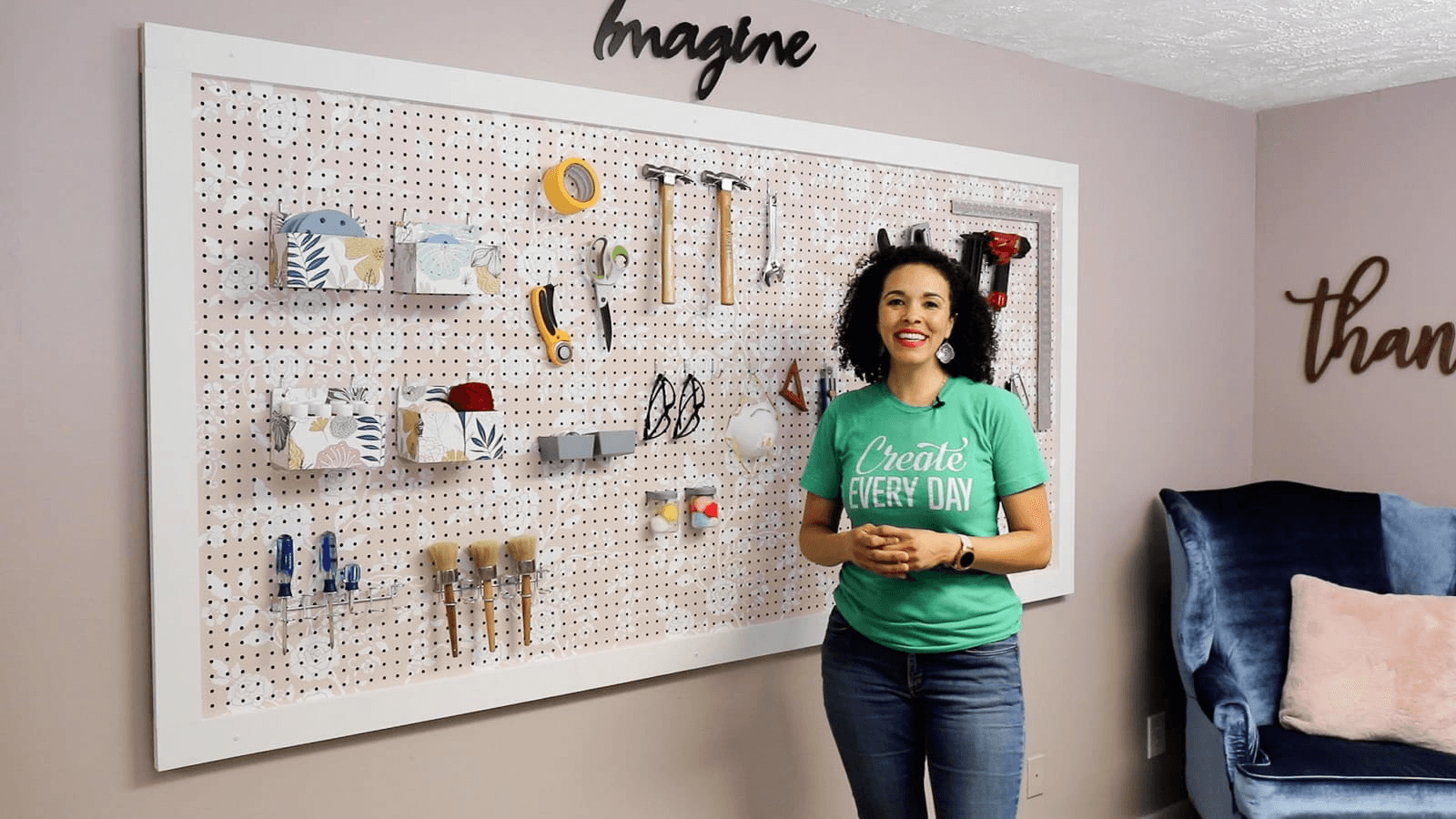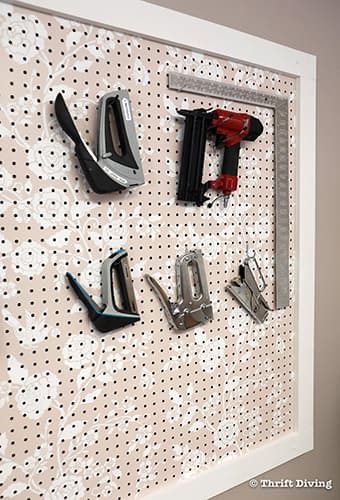 Now everything – from your safety glasses to your screwdrivers – has a home. We can’t wait to see what you use a DIY framed pegboard for and how you decorate it!