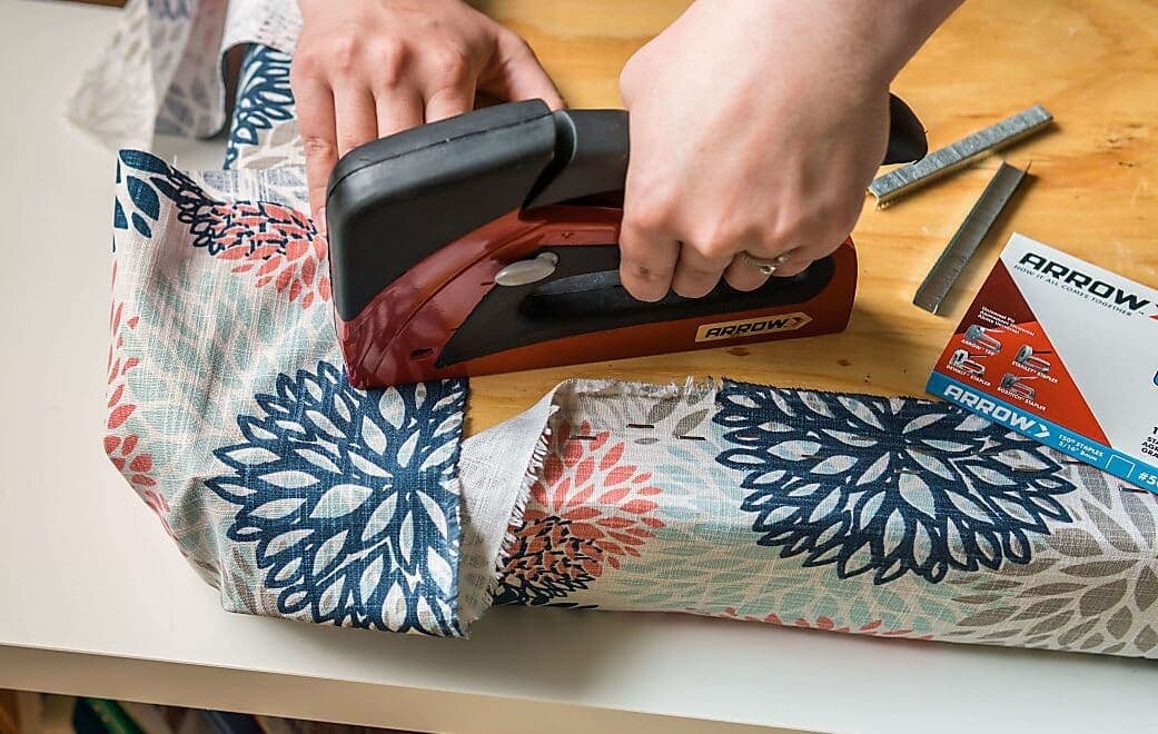 Repeat for the remaining three corners. Then examine the top and bottom of your cushion to ensure that there aren’t any gaps in your fabric. If there are, add more staples.