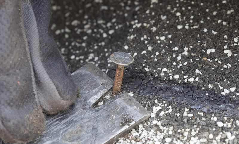 Once the tar seal is broken, slowly insert the pry bar under the shingle you want to remove until it is close to the roofing nail. Then gently lift the shingle and nail up about an inch. Remove the pry bar and place on top of the shingle, close to the nail. Push down on the shingle with the pry bar so the roofing nail pops up out of it. Next, use the pry bar to pull out the nail completely. Repeat to remove the remaining nails used for the shingle.