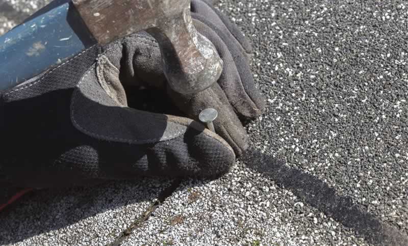 Some shingles blew off our roof during a recent storm, causing damage to the roof felt. Our house was roofed with three-tab asphalt shingles.
