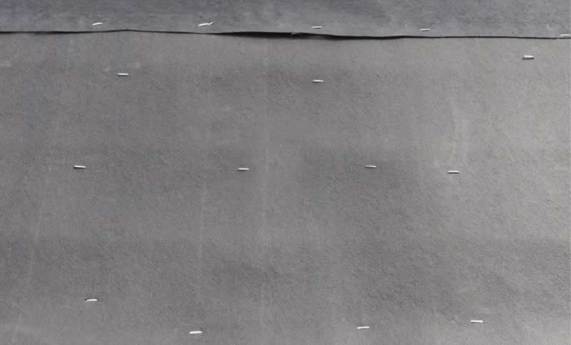 Place the replacement felt over the exposed area of the roof and secure using the Arrow HTX50 Professional Hammer Tacker and 1/2” T50 staples. Start by stapling a row in the middle of the new roofing felt section. Smooth out wrinkles as you progress to eliminate spots that could trap moisture and cause problems in the future. The bottom section of the replacement felt should overlap the top of the felt below it; the top section should be overlapped by the felt above it. This will ensure that water that gets through the roofing material will run down the felt and not seep under it. ARROW TIP: Make certain that the wood is completely dry. Never mount the felt paper on wet wood sheathing.