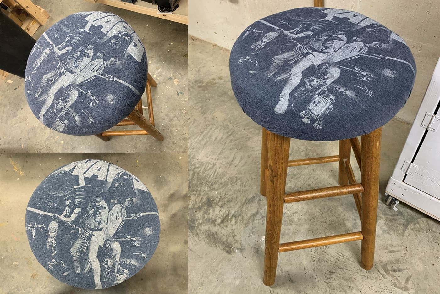 DIY UPCYCLE: T-SHIRT STOOL UPHOLSTERY