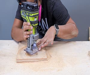 Then you will want to set up the straight router bit so that it is at least ⅛” less than the thickness of your plywood and route out the circle for your wireless charger to sit in. You’ll want the plywood between the wireless charger and the phone to be as thin as possible (without compromising the integrity of the plywood) for it to work efficiently.
