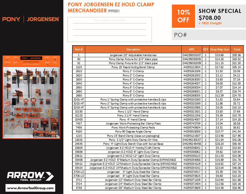Pony Jorgensen Clamp Planogram, 4 ft.